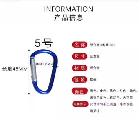 Carabiner D-type water bottle hook aluminum alloy outdoor quick-release spring hook backpack connecting buckle keychain