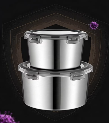 Food-Grade 304 Stainless Steel Airtight Food Container — Round Lunchbox, Takeout Box, Soup Container, and Household Bowl with Lid